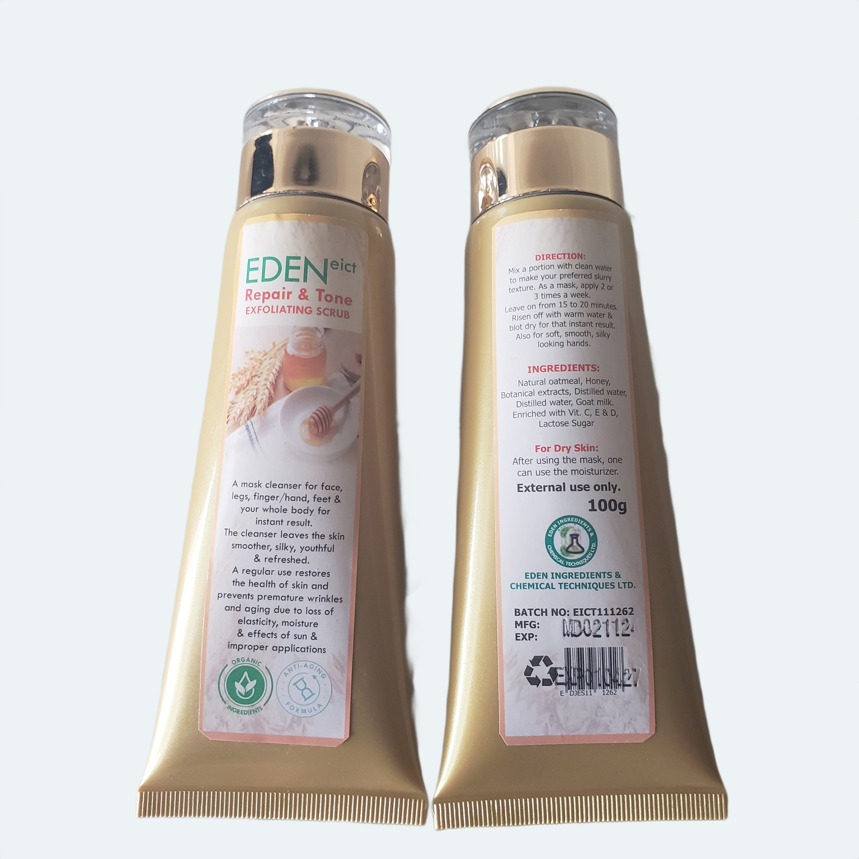 Treat your skin from head to toe with the Repair & Tone Exfoliating Scrub. This versatile mask cleanser, made with natural oatmeal, honey, and goat milk, gently exfoliates to reveal smoother, brighter skin. Use it regularly to restore skin health, prevent premature aging, and achieve a silky, refreshed glow.